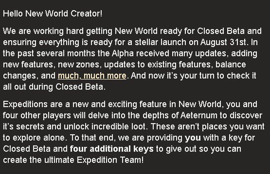 While this is nsf's beta site, the content is real new world beta. New world goes into a beta state today.